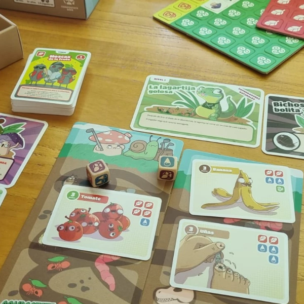 Transfórmate en un insecto del abono con poderes únicos, tira los dados para conseguir recursos y compite o coopera con tus amigos para tener la mejor cosecha de abono.