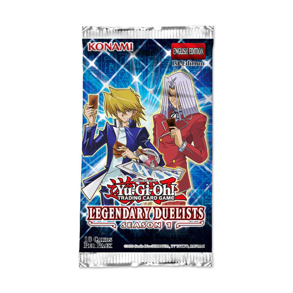 Cada caja incluye 2 booster packs de 18 cartas de Duelistas Legendarios: Temporada 1*, cada sobre incluirá 3 Cartas Ultra Raras y 15 Comunes. Las Cartas Ultra Raras serán de dos tipos: