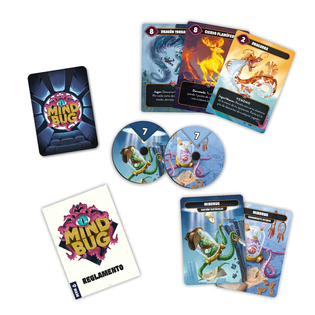 Como ocurría en el Mindbug original, deberás tener cuidado, pues en cualquier momento tu rival puede usar uno de sus Mindbug para tomar el control de tus monstruos. Codiseñado por el legendario Richard Garfield, creador entre otros muchos juegos del célebre Magic: The Gathering o King of Tokyo, Mindbug es un juego de cartas para dos jugadores, a partir de 8 años, que permite partidas de entre 15 y 25 minutos.