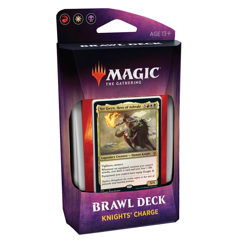 Los Brawl Decks son mazos de 60 cartas, listos para jugar, con cartas legales en Standard y específicamente diseñados para el formato Brawl*. Existen 4 mazos diferentes de Throne of Eldraine, y cada uno contiene 7 cartas legales en Standard que no se consiguen en los Boosters normales de la edición.