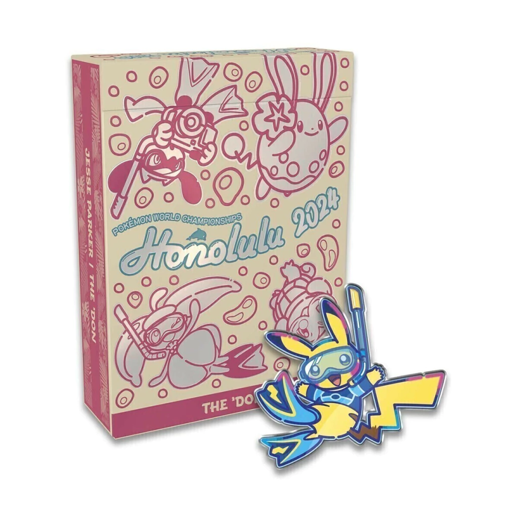 ¡Coge un mazo de Campeonato Mundial y juega como un campeón! ¡Elige uno de los cuatro poderosos mazos, cada uno de los cuales es una réplica carta por carta del mazo real de un aspirante al título del Campeonato Mundial del Juego de Cartas Coleccionables Pokémon 2024!