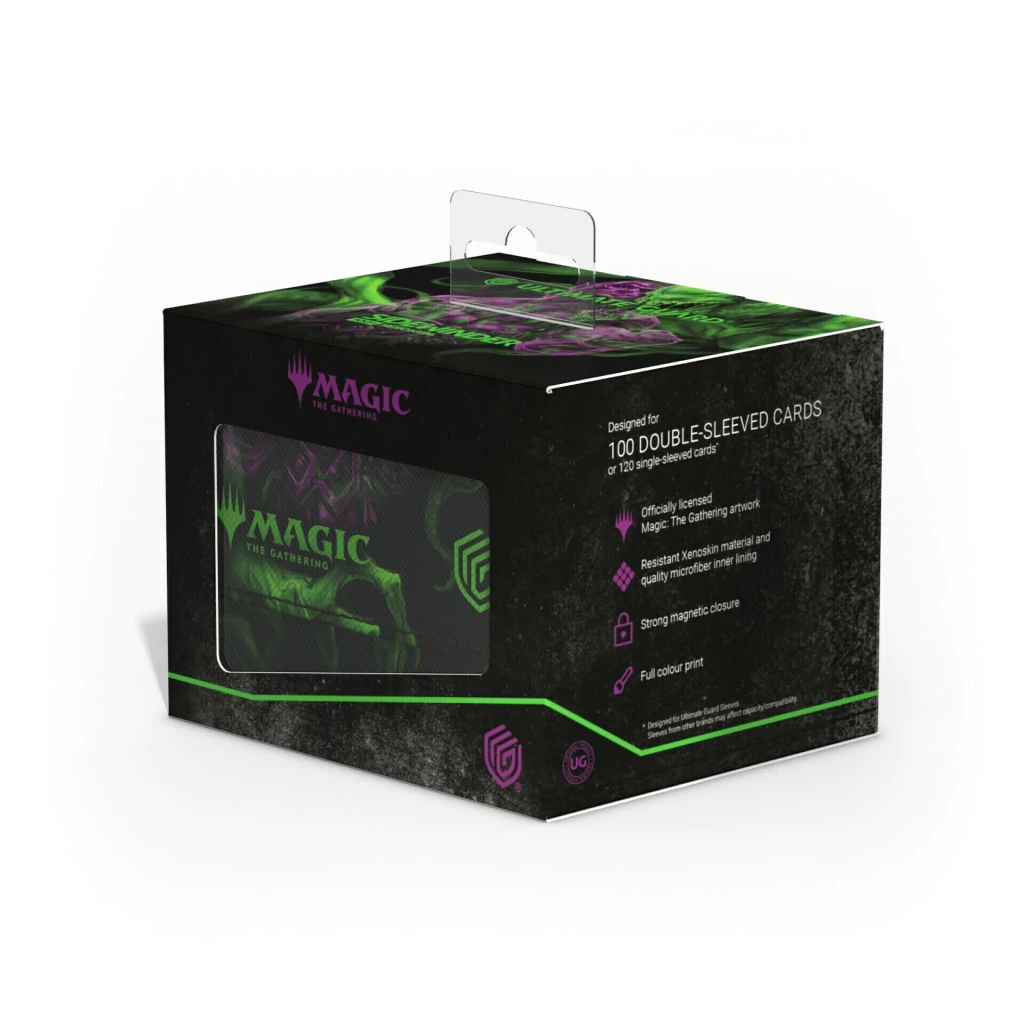 Nuestros Sidewinder 100+ Xenoskin están impresos a todo color con ilustraciones de Magic: The Gathering con licencia oficial. Los deck box están hechos de material Xenoskin duradero y tienen un forro interior de microfibra de alta calidad. Los sidewinders ofrecen espacio para 100 cartas con doble folio o 120 enfoliadas, ¡y son una combinación perfecta para el Omnihive 1000+ Xenoskin de la serie Duskmourn: House of Horror!