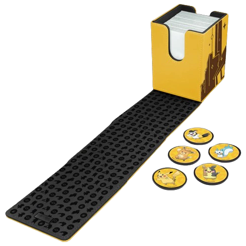 ¡Colecciona, almacena y personaliza con Alcove Click para Pokémon! El Alcove Click viene con cinco insignias temáticas con Pikachu, Emolga, Pawmot, Pachirisu y Morpeko. Esta Deck Box tiene capacidad para hasta 100 cartas de tamaño estándar con doble folio, cuenta con un fuerte cierre magnético y tiene dos muescas para el pulgar para un fácil acceso a su deck. Personalice su Alcove Click colocando sus insignias magnéticas favoritas y reemplazándolas con otras insignias. Las insignias tienen un diámetro de 1,5 pulgadas.